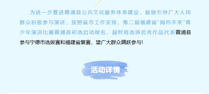 【初选启动】第二届福建省“阅向未来”青少年演讲比赛霞浦县选送活动报名啦