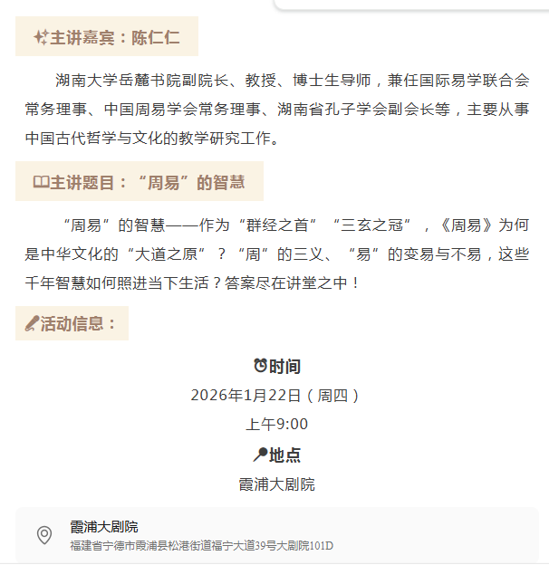 霞浦首场!国学文化讲堂!特邀国学大咖!